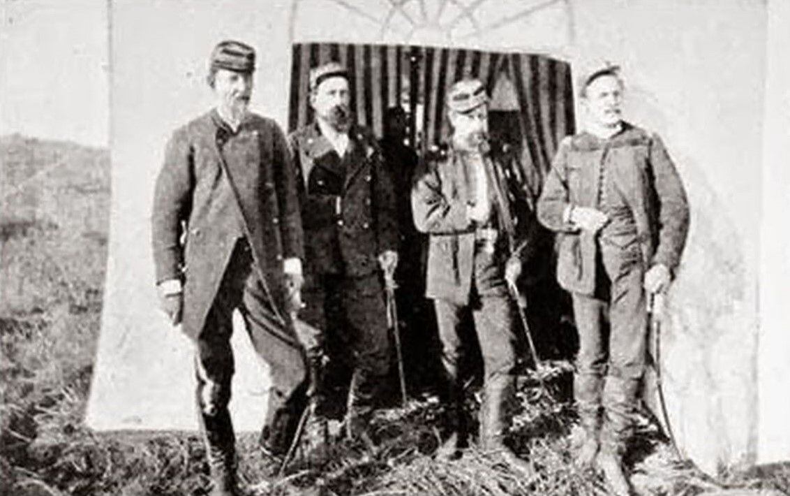Roca acompañado por Conrado Villegas, Teodoro García y Lorenzo Vintter, durante la campaña al desierto (Archivo General de la Nación)