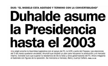El título de Clarín que anunciaba la presidencia de Duhalde y el fin de la convertibilidad