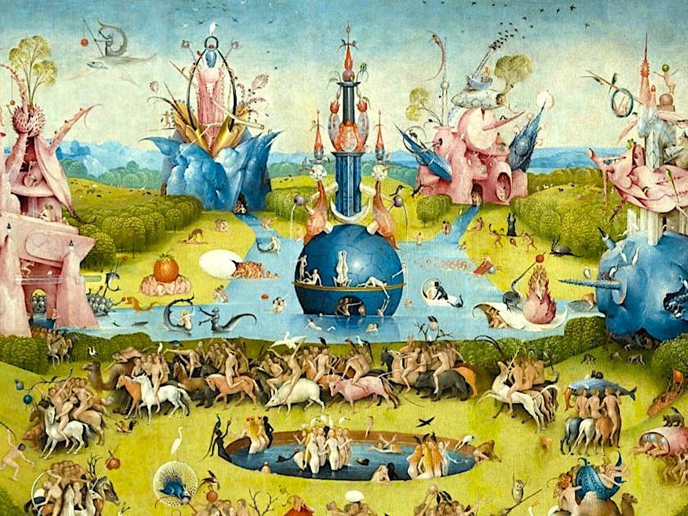 Como dijimos, es llamativo que la centralidad del tríptico recae en el Jardín de las Delicias. Es decir, lo que el hombre construye cuando se declara autónomo.